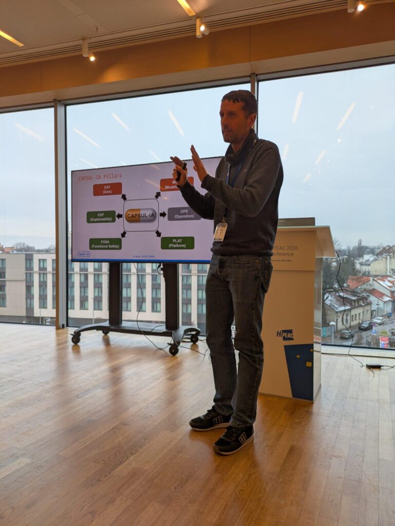 El proyecto CAPSUL-IA ha participado activamente en el Workshop on Mixed-Criticality Systems (MCS) – Safe Intelligent CPS and the Development Cycle, celebrado en el marco de la conferencia HiPEAC 2026, que tuvo lugar en Cracovia (Polonia) del 26 al 28 de enero de 2026. HiPEAC es la red de excelencia líder en Europa dedicada a la arquitectura de sistemas informáticos, compilación, computación perimetral y en la nube.