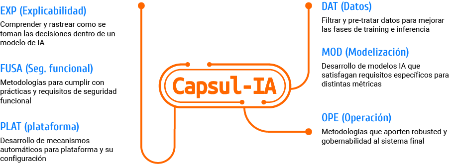 CAPSUL-IA propone una metodología para el desarrollo de funciones comunes a muchas industrias en la que se diseña un conjunto de soluciones de IA preconfiguradas, para varios conjuntos de requisitos, en los que se alcanza un balance entre diferentes métricas relevantes. Estas soluciones de IA serán satisfactorias en la mayoría de los casos. En los restantes, dichos diseños se pueden adaptar rápidamente y con bajo coste.